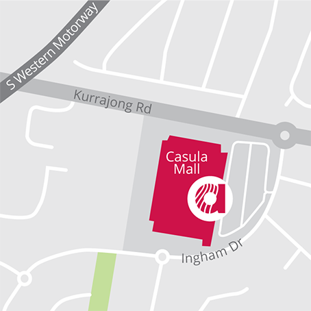 Casula Mall is located between the South Western Motorway and the Hume Highway, on Kurrajong Road.