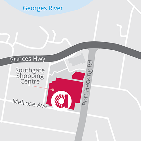 We are conveniently located within the Southgate Shopping Centre at the corner of Princes Highway and Port Hacking Road. We’re at Shop 28, located opposite the food court.