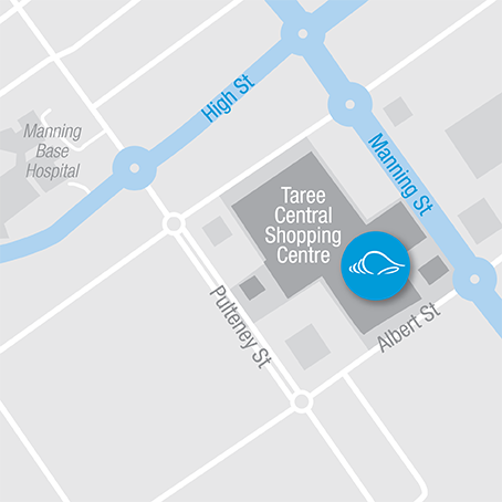 Taree Central Shopping Centre is located on the corner of Albert Street and Manning Street , Taree. We are found on the main run between Woolworths and Big W opposite Millers.